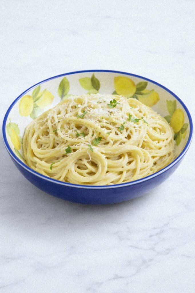 This is basically Italian cacio e pepe but with garlic and butter instead of black pepper. The pasta water does all the heavy lifting to create a silky sauce that clings to every strand. It’s one of those recipes where simple ingredients create something that tastes way fancier than the effort you put in.