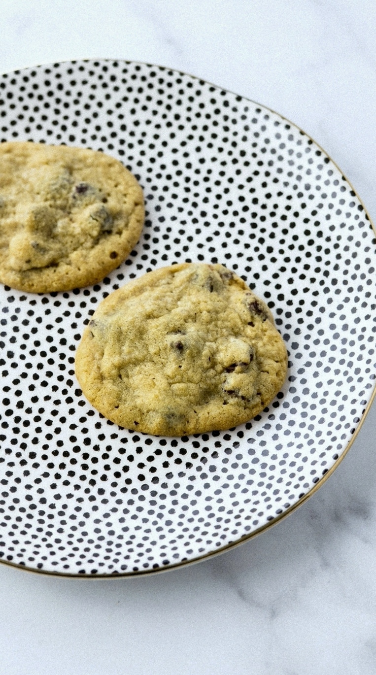 The cookies will firm up more as they cool – if you pull them too early they’ll be gooey, too late and they’re crunchy instead of chewy.
