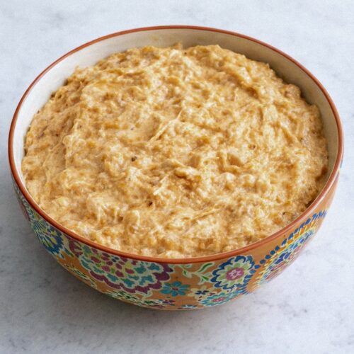 - Spread in casserole dish and bake at 350F for 20-25 minutes until bubbly and golden.