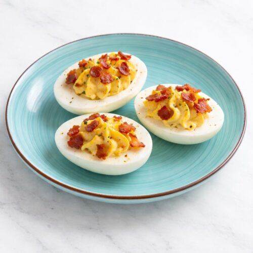 Pipe the mixture into 18 of the egg white halves; save any remaining whites for another use.