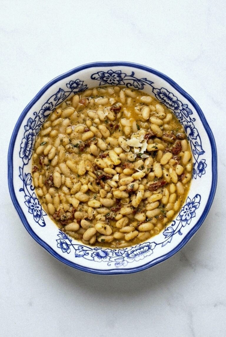 These beans are wicked cheap to make and come together in under 30 minutes. The Pecorino and sun-dried tomato oil build flavor without needing to simmer for hours.