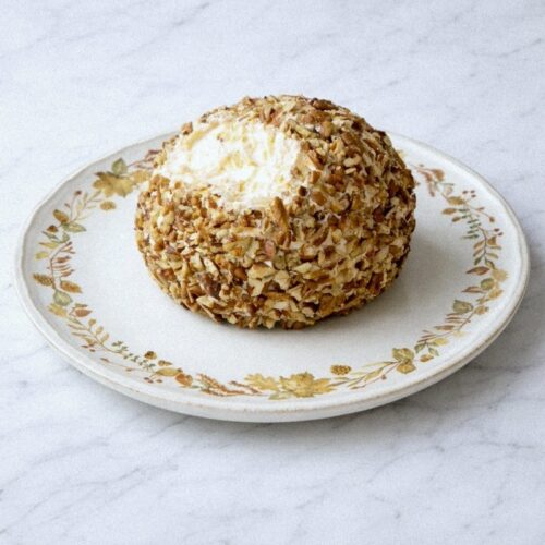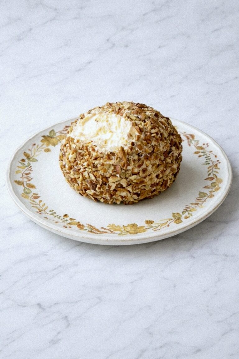 Roll the cheese ball through the pecans, pressing gently so they stick to the entire surface.