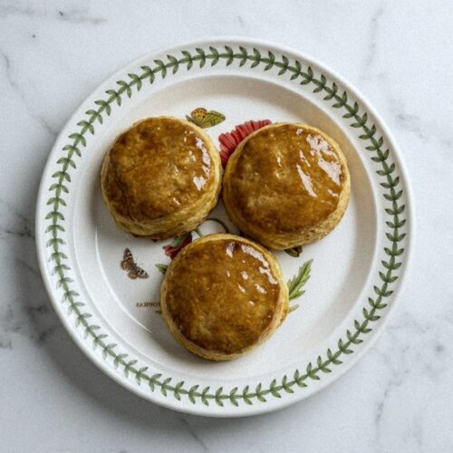 - Brush honey butter over warm biscuits and serve.