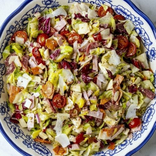 - ~5 oz Genoa salami, thick dinner-cut, sliced into strips