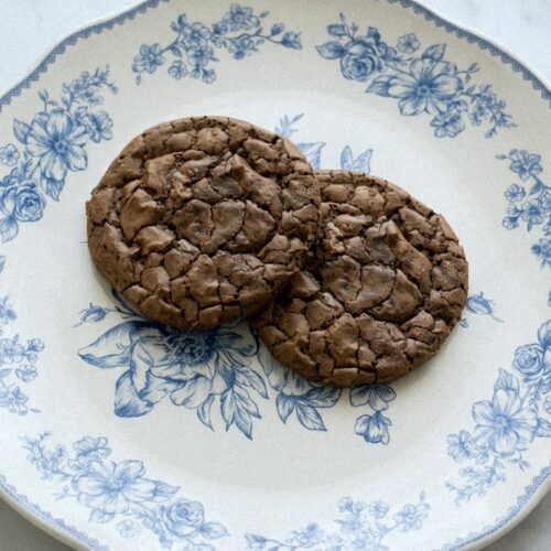 Bake for 10-12 minutes – the tops should look crackly and dried but the cookies will still feel soft when you touch them.