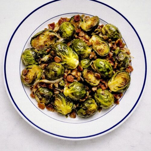 - Increase heat to medium-high and add Brussels sprouts, coating in bacon fat.
