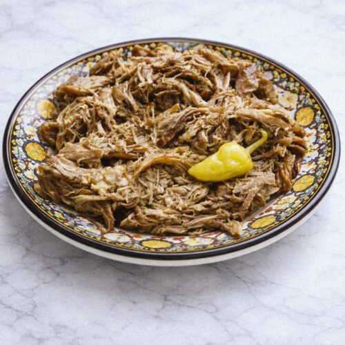 This is one of those crockpot meals that uses 5 ingredients and cooks itself while you’re at work. The ranch packet and au jus create this weird but really good gravy that soaks into the pork.