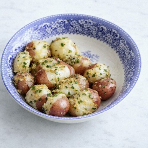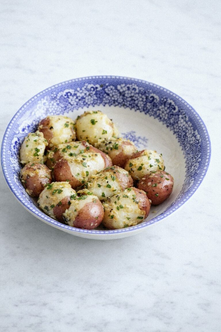 Drizzle the browned butter and garlic mixture over the hot potatoes.