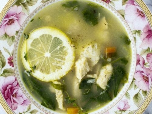 Lemon Chicken Quinoa Soup with Spinach