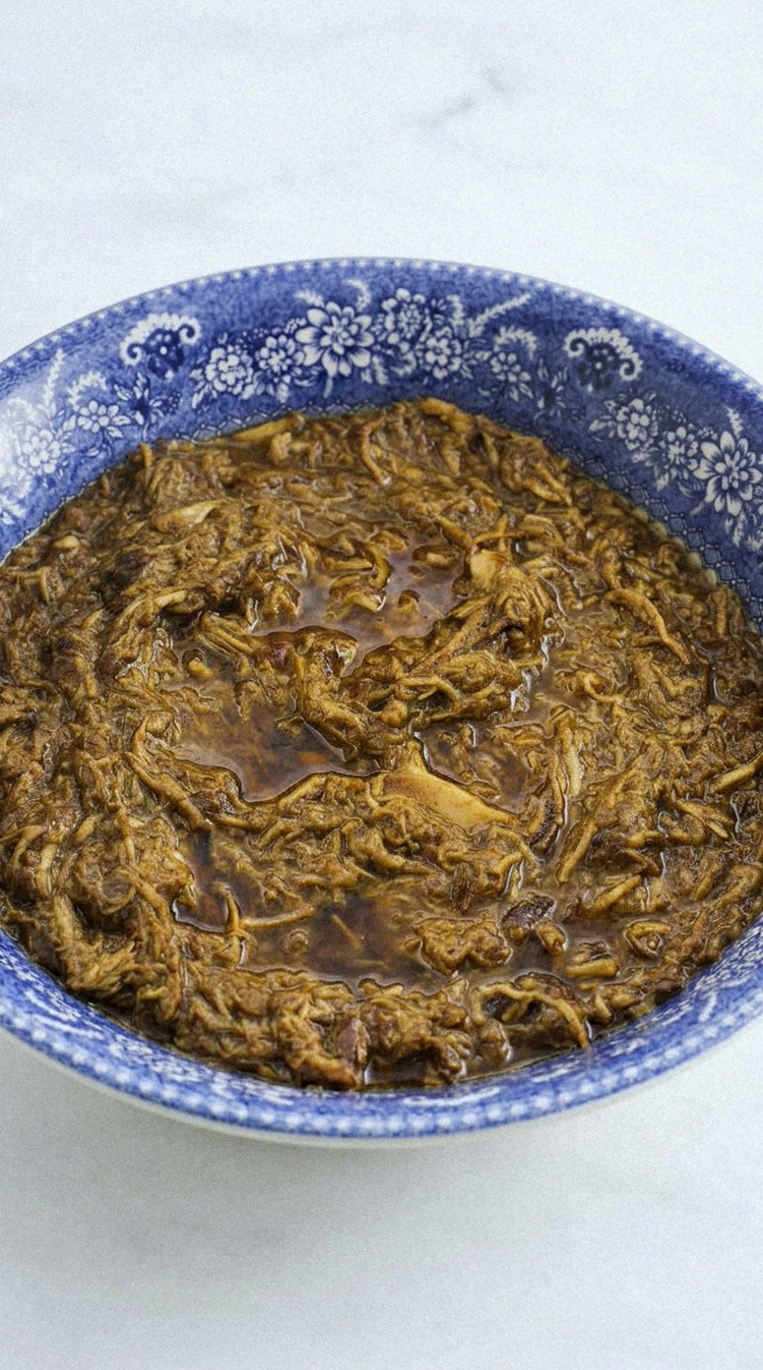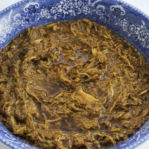 Shredded Slow Cooker Balsamic Soy Chicken