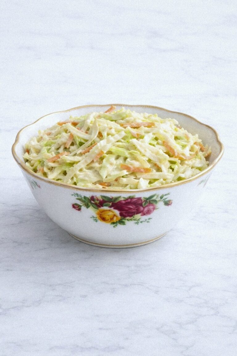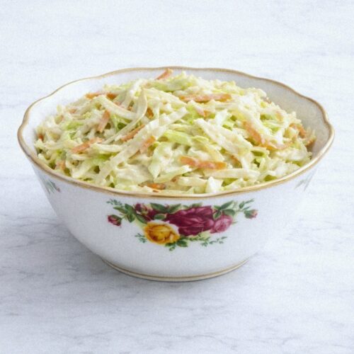This is the coleslaw recipe I make when I need a quick side that actually tastes like something. Four ingredients, takes about 5 minutes, and it’s way better than the watery stuff you get at most places.